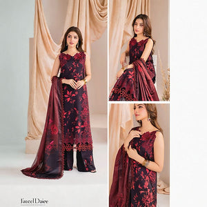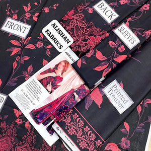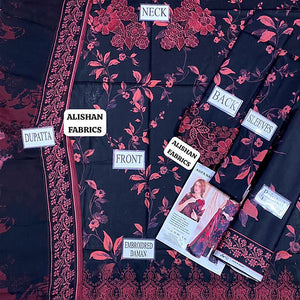 Printed lawn front with heavy embroidered work neck patch & heavy daman boarder